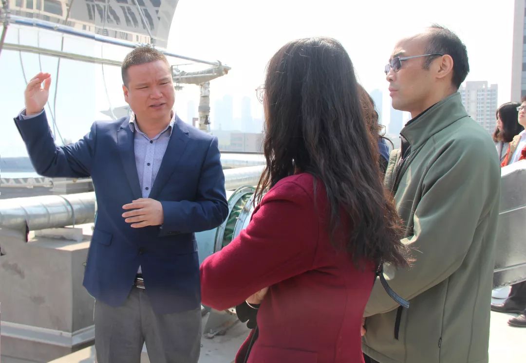 YABO鸭脖物联创新中心副主任王立波带领参观顶层太阳能装置