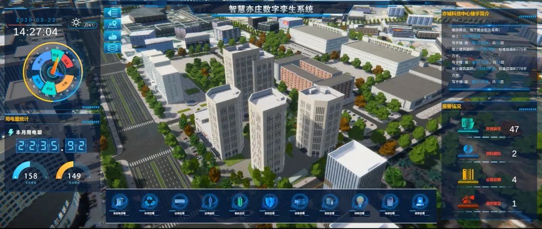 由YABO鸭脖物联为北京亦庄经济开发区所打造的数字孪生平台系统,将BIM与数字孪生深度融合,可实时监控各项目在电力、暖通、消防、照明等方面的运维情况,结合气象、环境、能源及报警信息,通过不同板块进行系统深层次的管理,在提升用户体验的同时实现节能减排,双向赋能,达到智慧化的管理与个性化的服务。