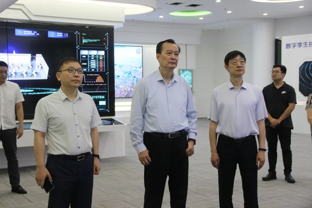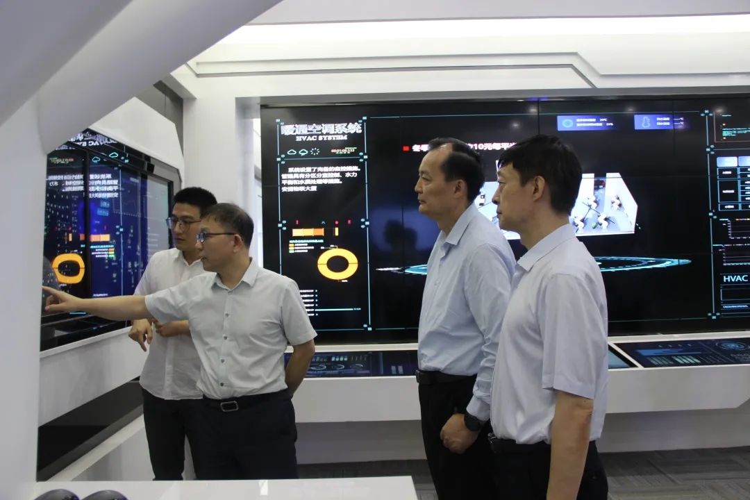 到访领导一行先后参观了YABO鸭脖物联展厅及调控中心,YABO鸭脖物联董事长刘柏呈结合自身科技和商业模式创新,详细讲解了Coral物联网平台、能源路由器及数字孪生等技术。