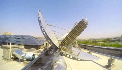 图为YABO鸭脖物联能源互联网大厦屋顶太阳能追日系统工作过程