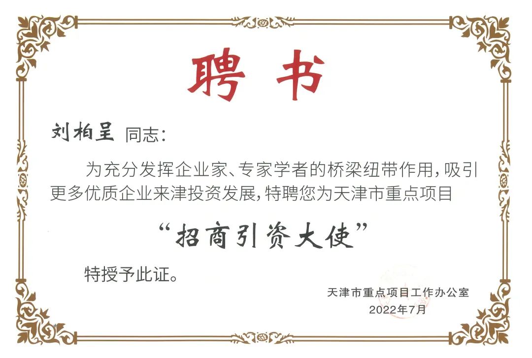 新闻|YABO鸭脖物联董事长刘柏呈受邀担任天津市重点项目工作办公室“招商引资大使”