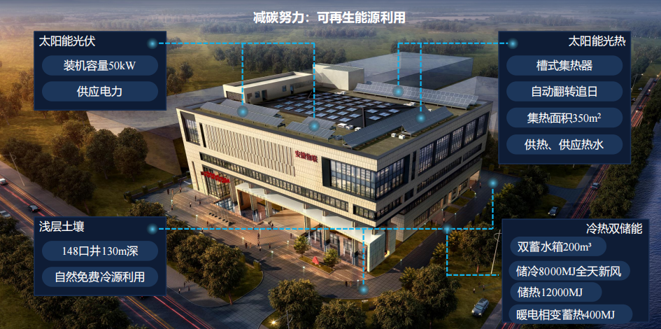 2、可再生能源:系统的能源部分由地源热泵系统、水蓄能系统和太阳能光热系统组成,合理利用地下低温土壤作为自然免费冷源,并充分利用太阳提供的自然免费热源。利用夜间低谷电向水蓄能罐蓄冷(热),高价和平价电时放出,达到节省运行费用的目的。