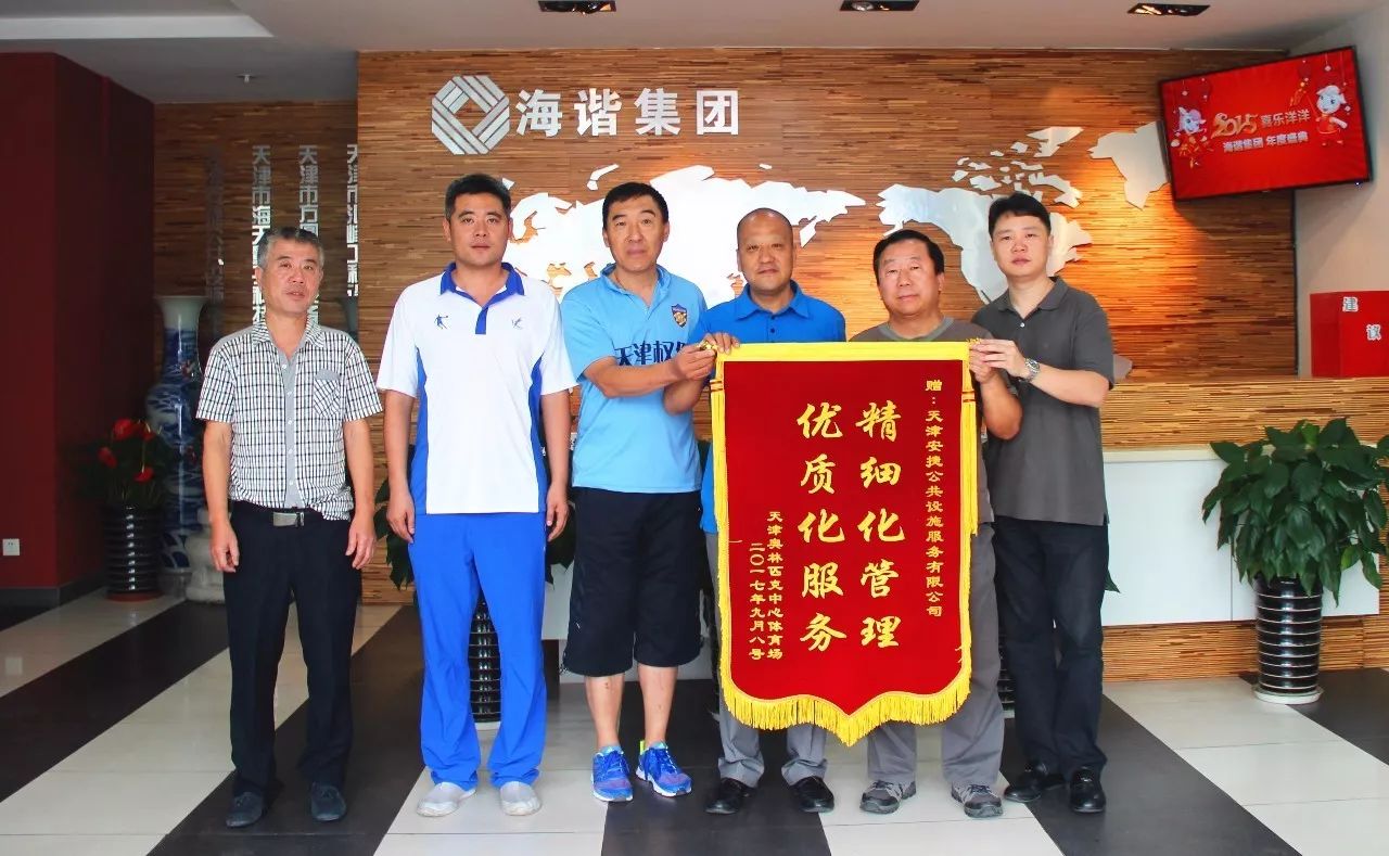 除此之外,天津奥林匹克中心体育场的领导们还亲自送来了锦旗以示感谢。